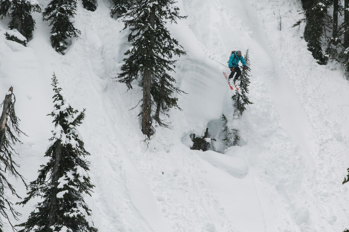 Skinning up the surrounding mountains was relatively easy. Once at the summit, we were able to confirm lines and terrain with the lodge via our transceivers. Cooperman recommended some steep glades that were naturally well-spaced, recommending we “mini-putt,” a term he uses for skinning and skiing small sections of the mountain all day.