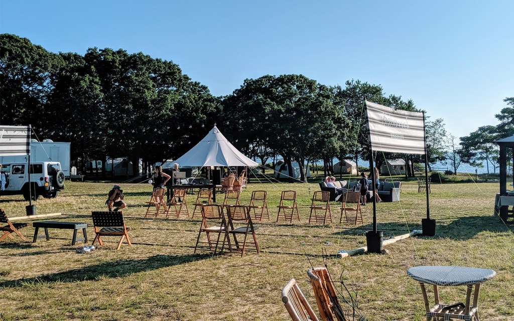 Once inside Cedar Point County Park, just north of East Hampton, Martin and Levine’s 30 safari-style rental tents (which start at $300 per night) overlook the shimmering waters between the park’s bluffs and Sag Harbor.