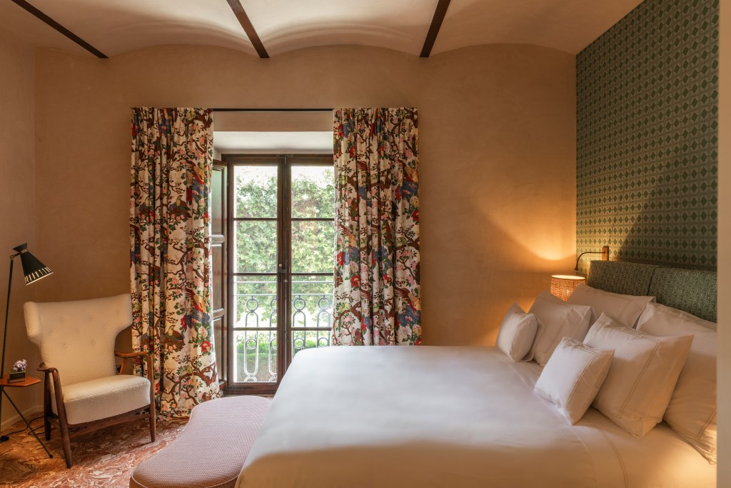 The estate was built in the mid-19th century by Gervasio Newton, a distant relative of Isaac Newton (after whom the property takes its name), but it was recently acquired by Swiss architect and interior designer Antonie Bertherat Kioes together with her husband, Philippe. The couple initially purchased a smaller cottage in 2010 (which today houses their Fabbrica Pienza winery) with the intent of making it their home, but when the opportunity to expand into the neighboring lands arose, they didn’t think twice about creating a haven for travelers. Casa Newton opened the doors in 2023.