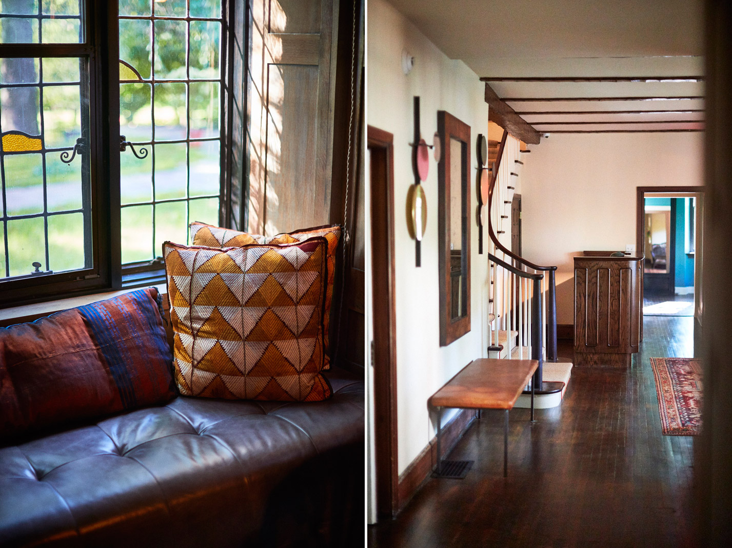 Alexandra’s vision aligns with her son’s wishes for the property. “Each room, depending on where in the property it is located,” she shares with us, “is designed to reflect and amplify the history and character of that space. The property itself is lush, green and expansive. Indoors, we used a variety of rich colors—deep burnt orange, green, blue and more—to create unique, bold and restful interiors. We sourced and worked with local artisans, repurposing furniture and creating our own Troutbeck collection pieces to align with the magnificent story of Troutbeck and what it has meant to so many.”