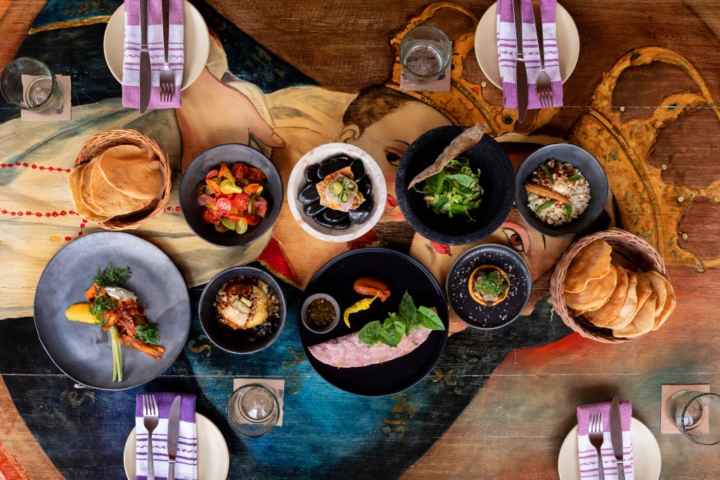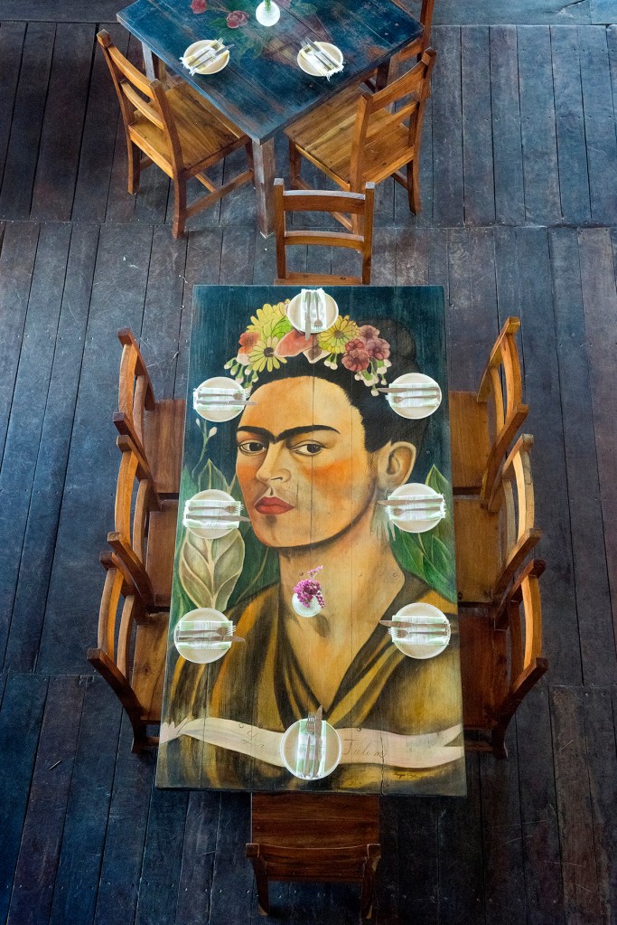 Diaz’s art is introspective, soulful and rooted in Mexican tradition. The colors are lively, and that was always important to Kendall. One of Diaz’s most instrumental works is a series of wooden tables that have been painted with prominent Mexican images. The wood is the perfect medium for Diaz’s detailed brushstrokes but there’s something surprising about the way that this art is integrated into the act of eating. A painting on a wall offers viewers the ability to interact with their eyes alone. A dinner table is more tactile. As food is passed around, the art becomes interactive. The lines are blurred between the quotidian and the surreal. And that, at its essence, is what Diaz brings to La Zebra.