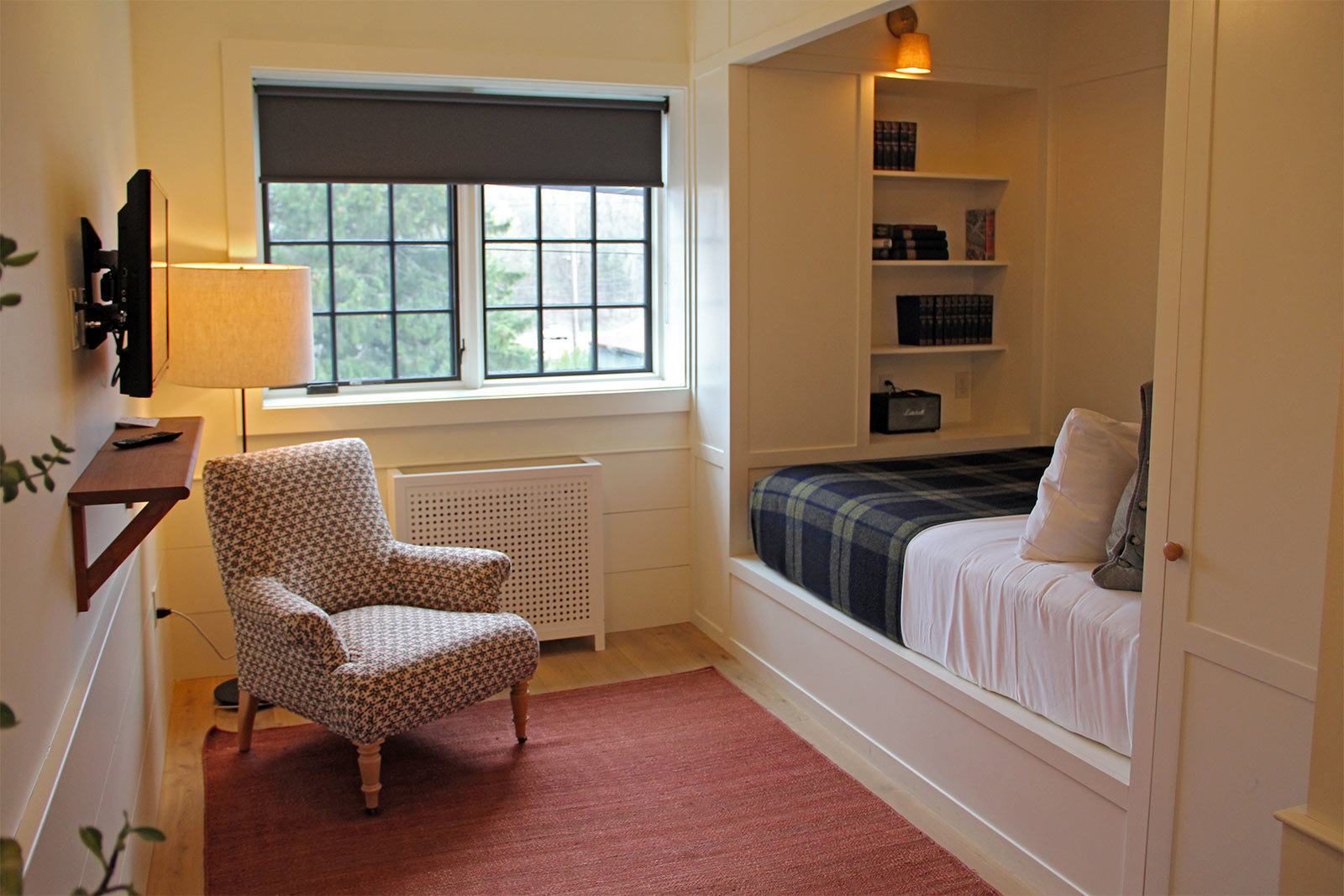 Designed by four NYC creatives who have long-preferred the Catskills to the Hamptons crowd, Graham & Co. Hotel is an idyllic retreat: a rustic-yet-modern alternative to “grandma-ish spots” or expensive resorts. The former Cobblestone Motel is on a three-acre swath surrounded by mountains, sky and river. Since renovations incorporating minimalist design elements, rustic furnishings and intriguing barn-sale finds, it’s been transformed. The main block contains 13 rooms, ranging from cozy singles to deluxe doubles. Some include kitchenettes and each has an iPod-enabled Tivoli radio. There are also bunk-style rooms and plenty of space outdoors for guests to sprawl on the lawn, hang in the hammock, read in Adirondack chairs by the fire-pit or swim in the pool.