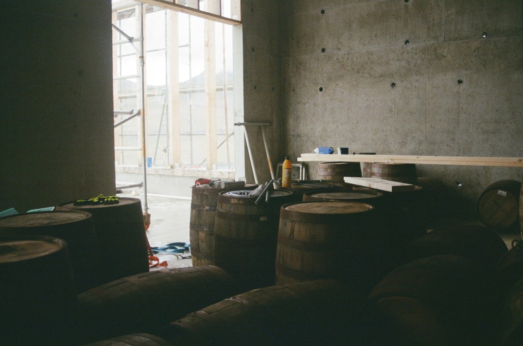 Driving us down the road to their barrel house, also still in the works, Hoydal tells us excitedly about other releases they are working on, including a gin that spotlights a “truffle seaweed,” in addition to the whiskey that they plan to bottle in 2026. The half-finished barrel house sits on the edge of a dramatic cliff—with barrels overlooking a precarious drop into the sea as wind whips around the open industrial room. When asked whether this unfinished environment might affect the final product, Hoydal says, “I hope so.”
