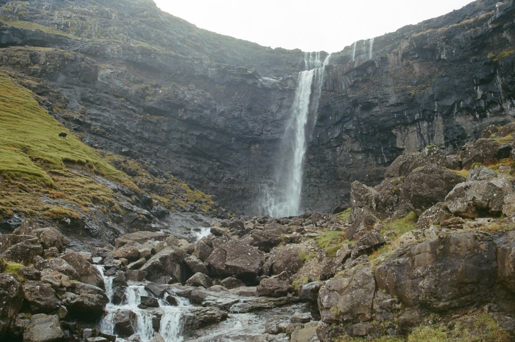Also gorgeous is the multi-tiered Fossa, which you can park nearly right in front of and walk all the way up to, if your shoes provide you enough traction to not slip on the wet rocks leading up to it. Either way, Staring up at the enormous waterfall is a great photo moment, and also one that simply makes you feel small in a very cool way. Water, falling from the sky and the rocks, splashing up in foamy waves against the islands’ shores, is superlatively intrinsic to Faroese culture.