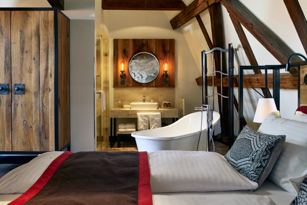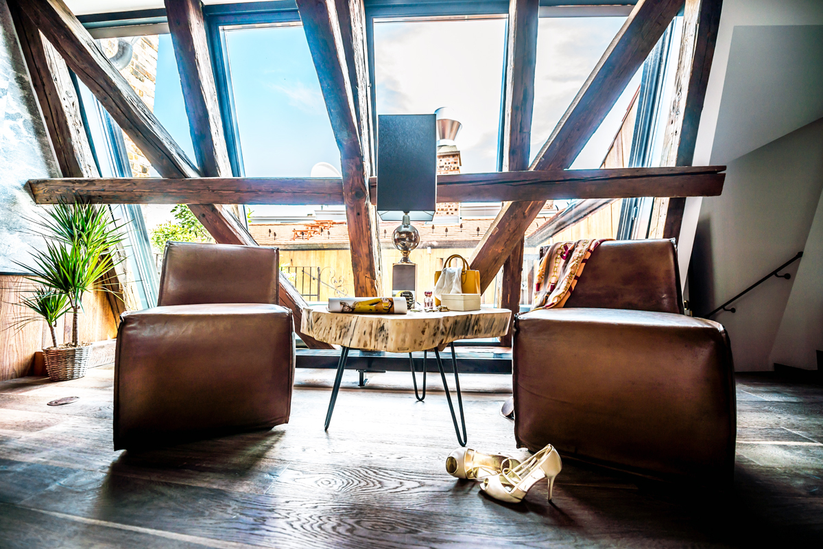 Most inaugural visits to Budapest rightfully include pilgrimages to the Buda Castle Districts charming, medieval streets. It is here that homey Pest-Buda, housed in the building that opened as Hungarys first hotel in 1696, offers salvation to famished tourists with pots of catfish paprikash and red-and-white checkered napkins. Embracing its rich lodging roots, Pest-Buda has now spawned a swish hotel above the restaurant. Up a winding staircase are the 10 hushed lairs that designer Tibor Somlai adorned with rustic beams, hardwood floors and contemporary accents like freestanding bathtubs in the Atelier suites. There are leather chairs to sink into, graphics-covered walls and brightly hued Smeg refrigerators. But the well-preserved original Baroque roof and floor-to-ceiling windows that magnify the imposing Gothic-style Matthias Church remind guests they are delightfully enmeshed in a centuries-old narrative.