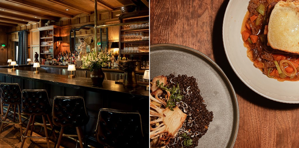 Owned by Kevin and Ali Cohane (who also run the nearby bakery Persephone) and chef Ben Westenburg, Coelette promises a cozy but sophisticated experience in the historic Coe Cabin. With a wood-burning fireplace; buttoned leather bar stools; log, wool and wood-paneled walls, and countless delightful (sometimes off-kilter) artworks and objects, the interiors are thanks to Nona Yehia of GYDE Architects, Christian Burch of local design store Mountain Dandy and Adam Connor of Remedy Design and Build. The food—described as snow-line cuisine—focuses on local and seasonal produce, with dishes like winter squash with walnut chili crisp, creme fraiche and petite greens or terrine made with venison, brandied cherries, pistachios, pickled romanesco and carrots. While there are a lot of meat- and fish-centric dishes, there are plenty of appealing options for vegetarians and the dessert menu offers a few surprises too. Talk to the knowledgable and upbeat staff members about wine choices or choose an expertly made classic cocktail, and be sure to take your time in this charming restaurant.