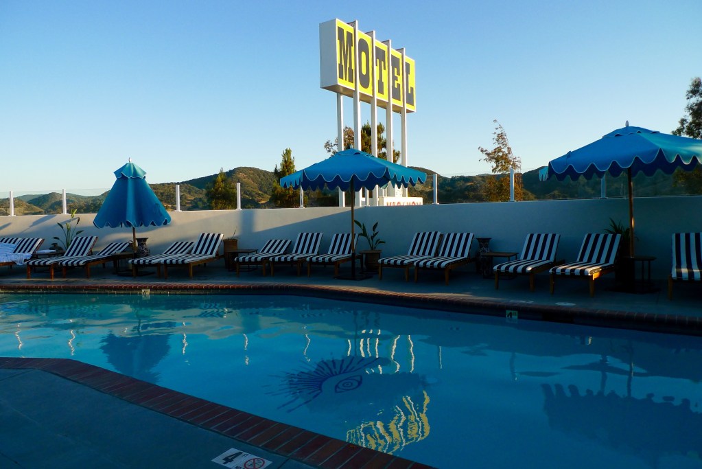 The recent full renovation of the Skyview Los Alamos transformed the 1959 motel into a luxury boutique hotel. The five-acre property perched on a hill overlooking the Santa Rita Hills, has 33 guest rooms. Designed by Ten Over Studio, this midcentury gem property has a pool next to their open-air cocktail bar and Norman restaurant. In the evening, guests gather at the fire-pit. With modern and rustic touches throughout, their cozy rooms have white linens, striped blankets, and hanging bar doors leading to new marble bathrooms. A deck by reception looks out at the surrounding landscape of vineyards and farms.
