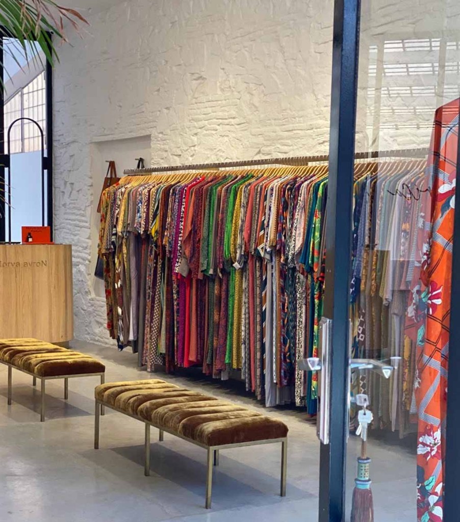 For colorful kaftans, jumpsuits and abaya-style garments with a decidedly European flair, Norya ayroN opened a second location outside of the medina, this time in Guéliz. Local seamstresses sew the original designs in a bright, airy space downstairs in the new shop. Owner Norya Ayron sources fabrics from all around Africa and Europe, and the shop itself is a swirl of patterns and colors.