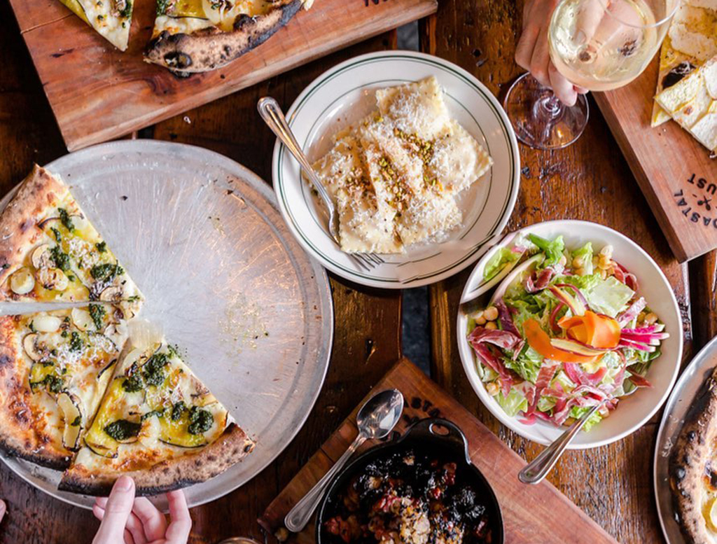 A visit to the navy A-frame of Coastal Crust, a family-run pizza restaurant, feels like an event—from the handmade dough and pizza options crammed full of seasonal delights to the ambiance. Their signature vintage truck-turned-oven provides a lovely backdrop, while ample outdoor space complete with cozy fire-pits sets a great mood for al fresco experiences.
