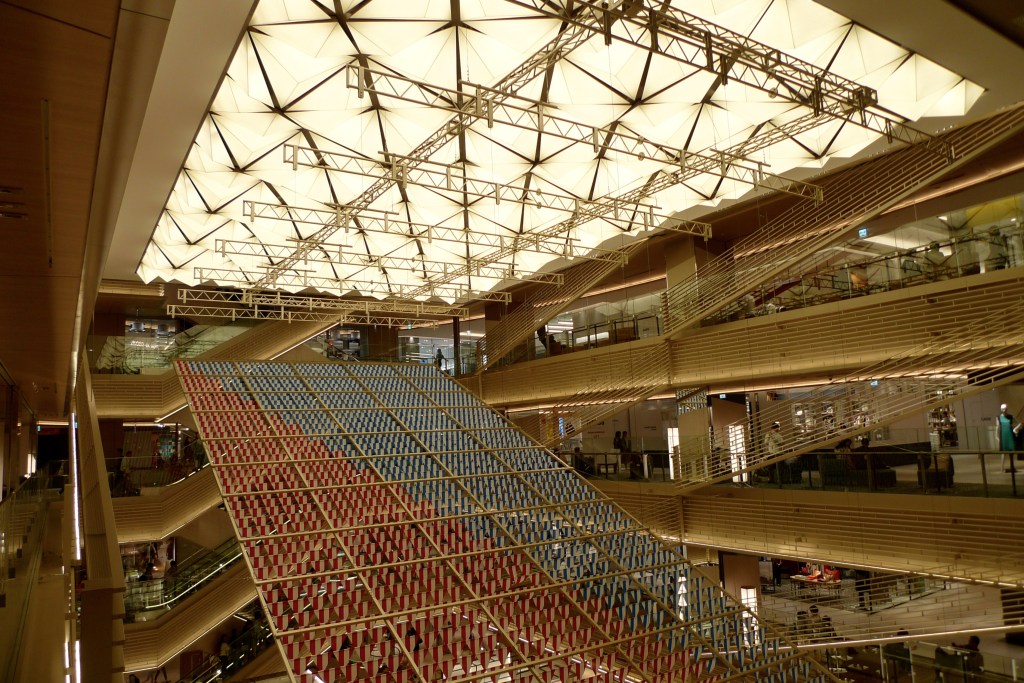 Since opening last year, Ginza Six has developed a reputation as one of the world’s most interesting malls. Designed by Yoshio Taniguchi of Taniguchi and Associates, this luxury mall filled with art opened with a Pumpkin installation by Yayoi Kusama and now is showcasing “Like A Flock Of Starlings” by Daniel Buren with 1,500 of his trademark red and blue striped flags. Public art in the building includes Shinji Ohmaki’s “Echoes Infinity-Immortal Flowers,” Misa Funai’s “Paradise/Boundary/Portrait,” and Yuumi “Domoto’s Tami.” It’s hard to miss “Universe of Water Particles on Living Wall” by team lab—a digital LED installation of a waterfall that spans multiple levels. We shopped for graphic design items at D Bros and camera straps at Leica. We poured over the shelves of magazines at Tsutaya bookstore and saw the Kishio Suga sculpture exhibit at their gallery space, The Club. We ate yakitori and oyako don at the Premium Food Hall. We walked through the rows of sweets in the basement floor food hall and had tea from Nakamura Tokichi. Ginza Six also houses several luxury brands including House of Dior, Céline, Saint Laurent, Valentino, Fendi, Rolex, Marni, alongside many Japanese stores: home goods at Nakagawa Masashichi Shoten and Gyokusendo, laquerware at Yamada Heiando and a Jotaro Saito boutique.