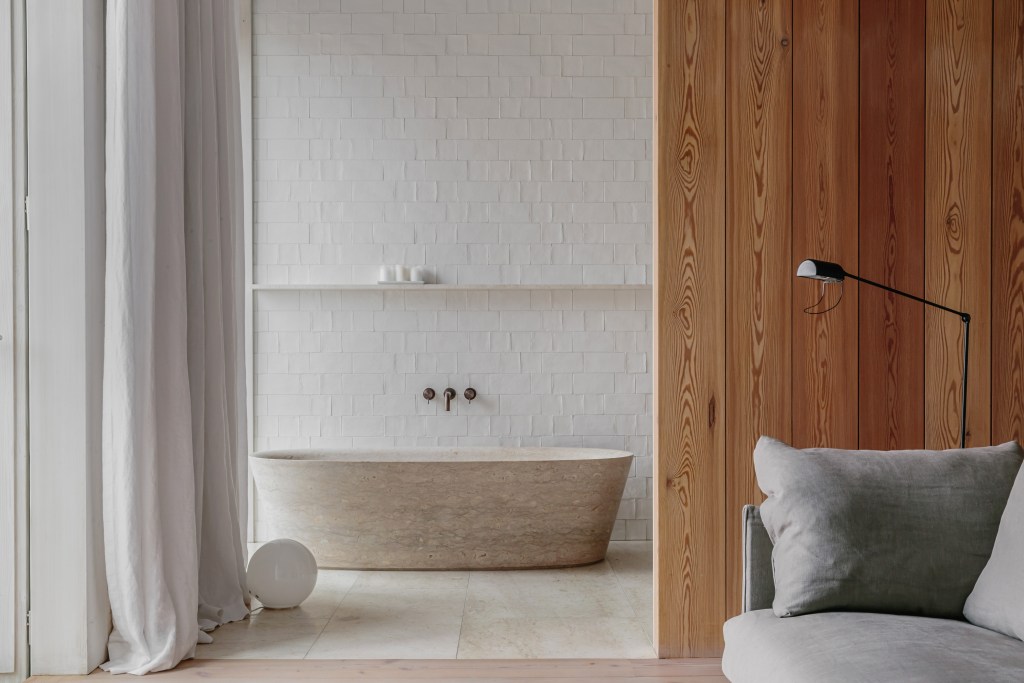 Santa Clara 1728 is the only city property of Silent Living, a collection of family homes lovingly restored and opened to guests by João Rodrigues. He, together with architect Manuel Aires Mateus, created five sanctuaries, each with their own stories and memories, where guests can live in sublime simplicity within a familiar environment. This particular property, which overlooks the Tejo River and the Santa Engrácia church, is located within an elegant 18th century mansion converted into a six-room guesthouse that breathes quietude. Inside, the design is centered around the use of natural materials such as wood, stone and linen, and highlights the savoir-faire of local artisans, such as the sleek cream colored bathtubs made with limestone from Sintra. The ground floor houses the newly launched Ceia, a convivial dining concept where the chef curates a daily menu with the seasonal fruits and vegetables picked at the sister property Casa no Tempo in the outskirts of Lisbon.