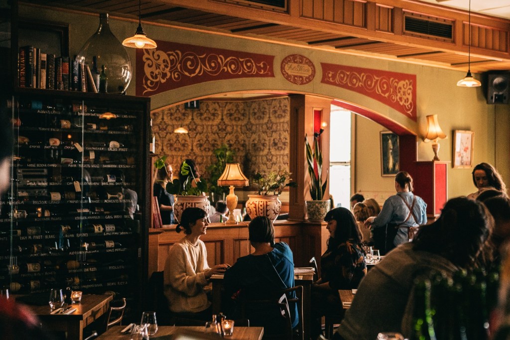 Whether stopping by to grab a bottle to go or settling in for an evening, guests at Public Wine Shop will find the same impressive labels available. Close to the ever-popular Edinburgh Gardens, the space is minimal (whitewashed bricks and timber are visible between the bottles lining the walls) but sunny and bright. Dishes are simple (but don’t be fooled by their minimal menu), wine-friendly and change often; expect snacks like tinned sardines with bread, oysters and crab capellini. There are no reservations and the shop is small, so consider arriving early—especially if you’re dining with a group larger than three or four.