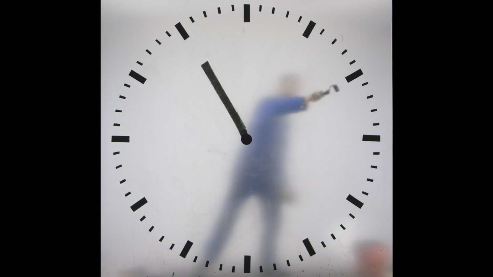 “Real Time” is a term used in the film industry in which the duration of a filmic scene is the same length as it was originally recorded. “I play with that concept in my Real Time clocks by showing videos where the hands of time are literally moved in real time,” says Baas. Each “Real Time” clock shows a performance made by Baas that takes exactly 12 hours to complete a cycle and thus 12 hours to watch it in its entirety. A hyper-real representation of time, and true study of the meanings and connotations of time and its passing.