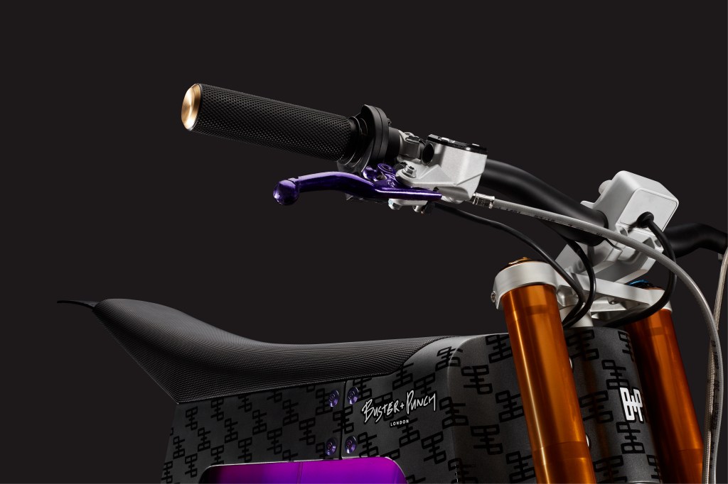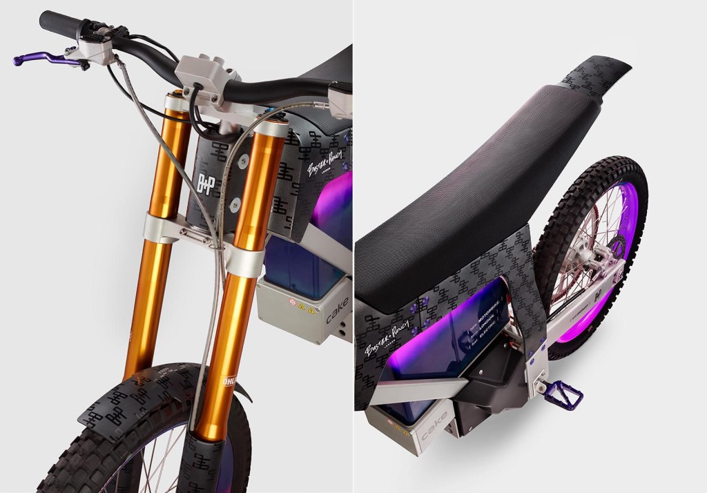 Sold out within hours, CAKE’s new, limited edition electric motorbike—made in collaboration with London’s Buster + Punch—launched today and looks like it rode in from the future. The £18,000 vehicle includes all of the features typical of the Swedish bike company, but unlike the sleek utilitarian aesthetic that encompasses many of their previous models, this version gets a unique upgrade with an electrifying purple chassis and new cutting-edge materials. With Buster + Punch’s passion for bold design, inspired by East London’s subcultures, it’s a natural partnership that results in a fiery creation that’s explicitly innovative—inside and out.
